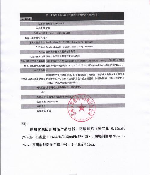 蘇州市蘇普利馬器械有限公司是專業(yè)從事醫(yī)用X射線防護系列用品、裝置、代理德國Dr.Goos-Suprema Gmbh.顧斯博士-蘇普利馬有限公司生產(chǎn)的原裝進口鉛衣及醫(yī)用觀片燈的生產(chǎn)銷售企業(yè).生產(chǎn)的X射線防護圍裙均來自美國SHIELDING公司的最新型超薄型防護材料,,具有防護性能可靠、穿戴舒適、輕便柔軟、操作自如等諸多優(yōu)點.產(chǎn)品均通過相關(guān)X射線檢測機構(gòu)的檢測,達到產(chǎn)品標(biāo)準(zhǔn)的要求.X射線醫(yī)用膠片觀察燈。是采用全LFD燈光技術(shù)。具有重量輕,光源均勻,亮度高,無頻閃,不變型,使用壽命長等特點。均取得了生產(chǎn)許可及醫(yī)查看更多>>